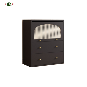Gabinete de comedor de ratán retro negro Gabinete de almacenamiento multifuncional frente a la pared del comedor de la sala de estar francesa